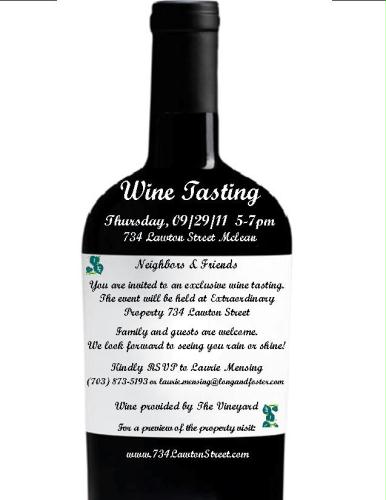 You are invited to an exclusive wine tasting. The event will be held at Extraordinary Property 734 Lawton Street. Family and guests are welcome. We look forward to seeing you rain or shine!